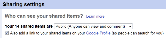 All of this got me thinking about a Google property that I use a lot – Reader. One thing I like about Buzz is that when I am in Reader I can share cool articles I find to Buzz very easily. When you click the “Share” button at the bottom of a Reader article it should automatically post to Buzz for all of your followers to see. If it doesn’t then make sure it is set to Public by going into the left column and clicking “Your Stuff” and then “Shared Items”. At the top make sure that “Your x shared items are” is set to Public.