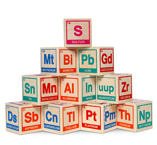 ThinkGeek has put the Periodic Table on everything from t-shirts, to beer glasses, and from shower curtains to refrigerator magnets. Personally, I think that the Periodic Table Building Blocks would be the most fun to play around with. The blocks are solid wood, and designed for use by geeks who are at least 2 years of age.