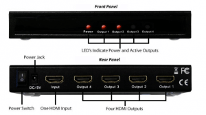 One of the challenges I have seen with HDMI Splitters is that sometimes they do not sync with the devices they are connected to. In my test I did not have any Sync issues, and plugging in a device without recycling the power was not an issue as the device detected the new component and outputted video to it. The front panel shows power condition, and led’s light light up when a device is plugged in and has an active output.