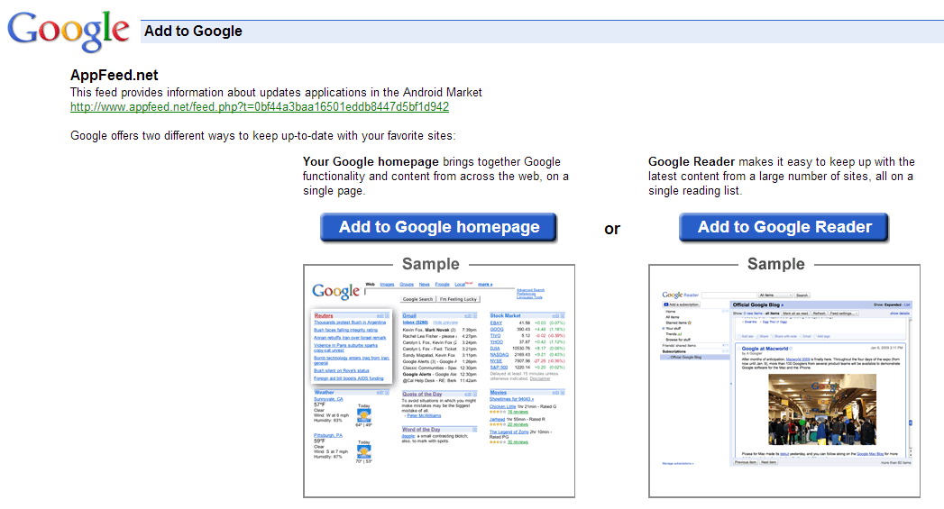 You can sign into the service using your Google, Twitter or Facebook accounts. Once logged in, you can click “My Feeds” and get an RSS feed that you can add to your reader of choice. This will give you up-to-date information on what apps have received updates, so you can go play that new set of Angry Birds levels as soon as they are released.